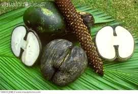 Il grande affascinante Coco De Mer è un frutto naturale ed è chiamato Coco De Mer (cocco di mare), perchè i primi a scoprire questo frutto pensavano che arrivassero da sotto il mare, poichè li trovarono a galleggiare in riva al mare. Il Coco De Mer è un frutto raro perchè si trova solamente nelle isole Seychelles; esistono 4000 esemplari di palme di Coco De Mer, le noci più grandi sono alte 60cm e pesano 20kg, le noci medie sono alte 30cm e pesano 10-15kg, e le noci piccole sono alte 15cm e pesano 2kg. si dice che i Coco De Mer più alti della valle de mai abbiano 800 anni. A una palma di Coco De Mer servono 25 anni solo per germinare, e quasi un millenio per avere la piena maturità